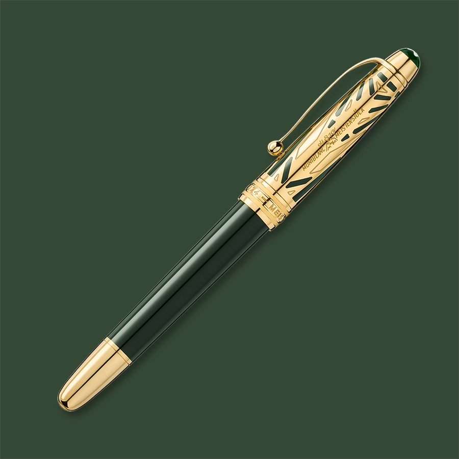Expertly crafted from dark green precious resin, the cap features a fluid pattern inspired by early designs, representing the dissolution of ink onto paper, elegantly contrasted by gold-coated fittings. The clip is an homage to early clip shapes found in some of the first Meisterstück writing instruments, evoking a sense of nostalgia. Upon closer inspection, one can discover the original Meisterstück logo, which has adorned the cap as a symbol of high quality since its inception. This jubilee edition is decorated with a special cap ring showing the years 1924 and 2024 . Here's to another 100 years of excellence with Meisterstück! |